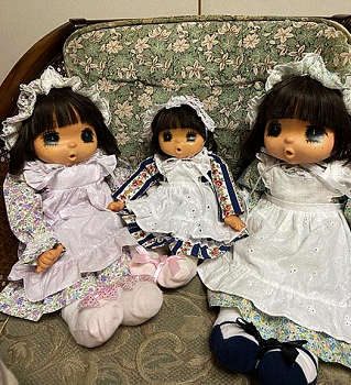 よぴぴさんから送って頂きました。 全部昭和のセキグチのお人形さん です。 「新しいお洋服に着替えたみんなの表情がとても嬉しそうで、こちらまで笑顔になってしまいます。 ワンピースにエプロンの後ろ姿もたまらなく可愛いんですよ。 お人形の雰囲気に合わせて色や柄を選ぶのも楽しくて、ぜひまたお着替えを購入したいと思います。 ステキなお店を見つけることができてよかったです。」 |